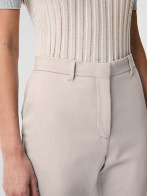 - Tailored waistband with a hook and eye closure